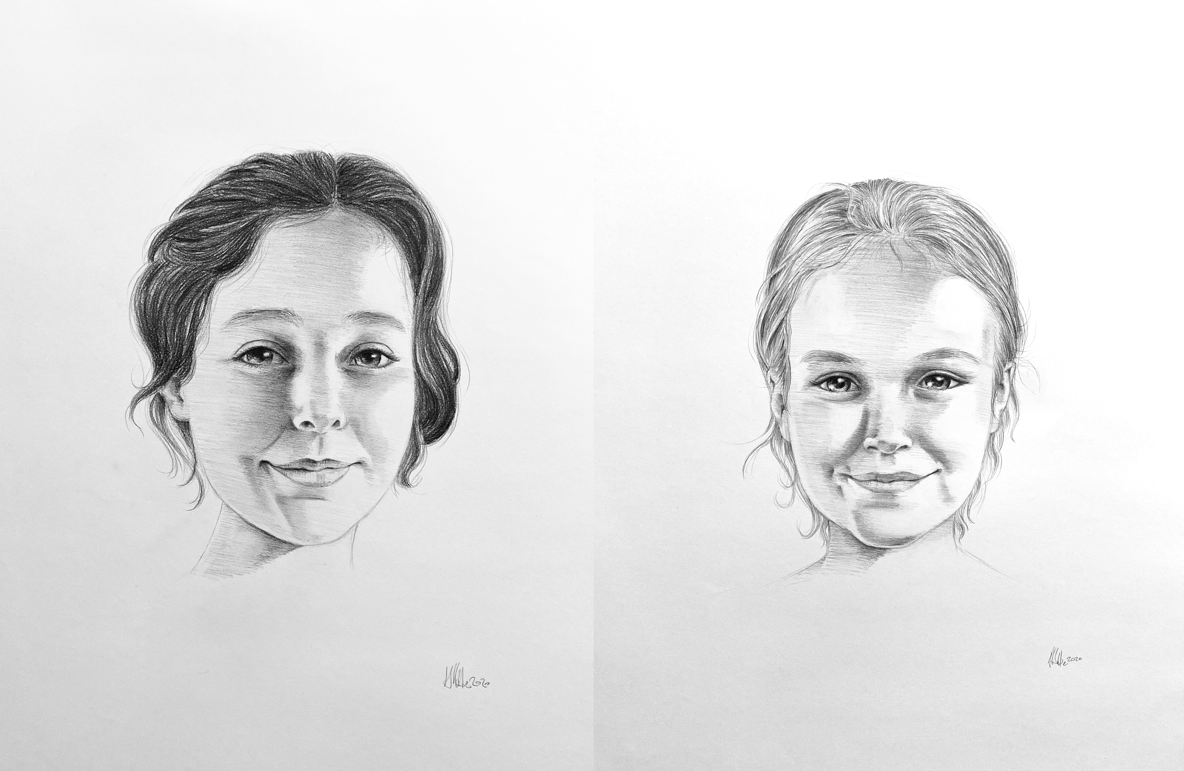 Kinderportraits. Bleistift auf Papier.